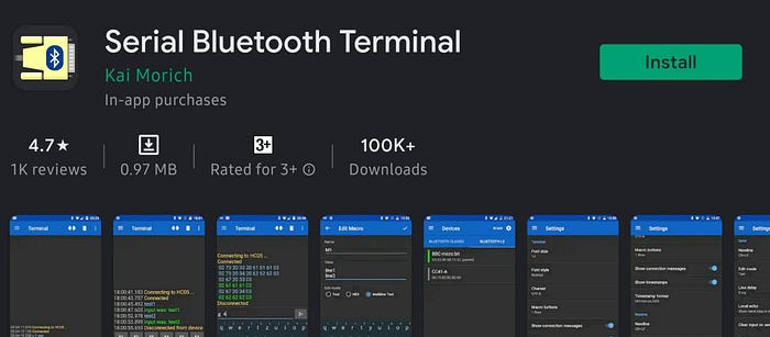 Android 스마트폰에 Bluetooth Terminal 애플리케이션을 설치해야 합니다. 쉽게 하기 위해 Play 스토어에서 제공되는 이 Serial Bluetooth Terminal 애플리케이션을 추천합니다.