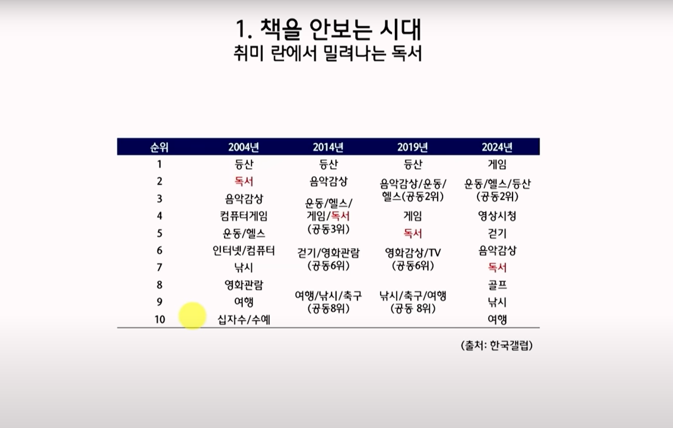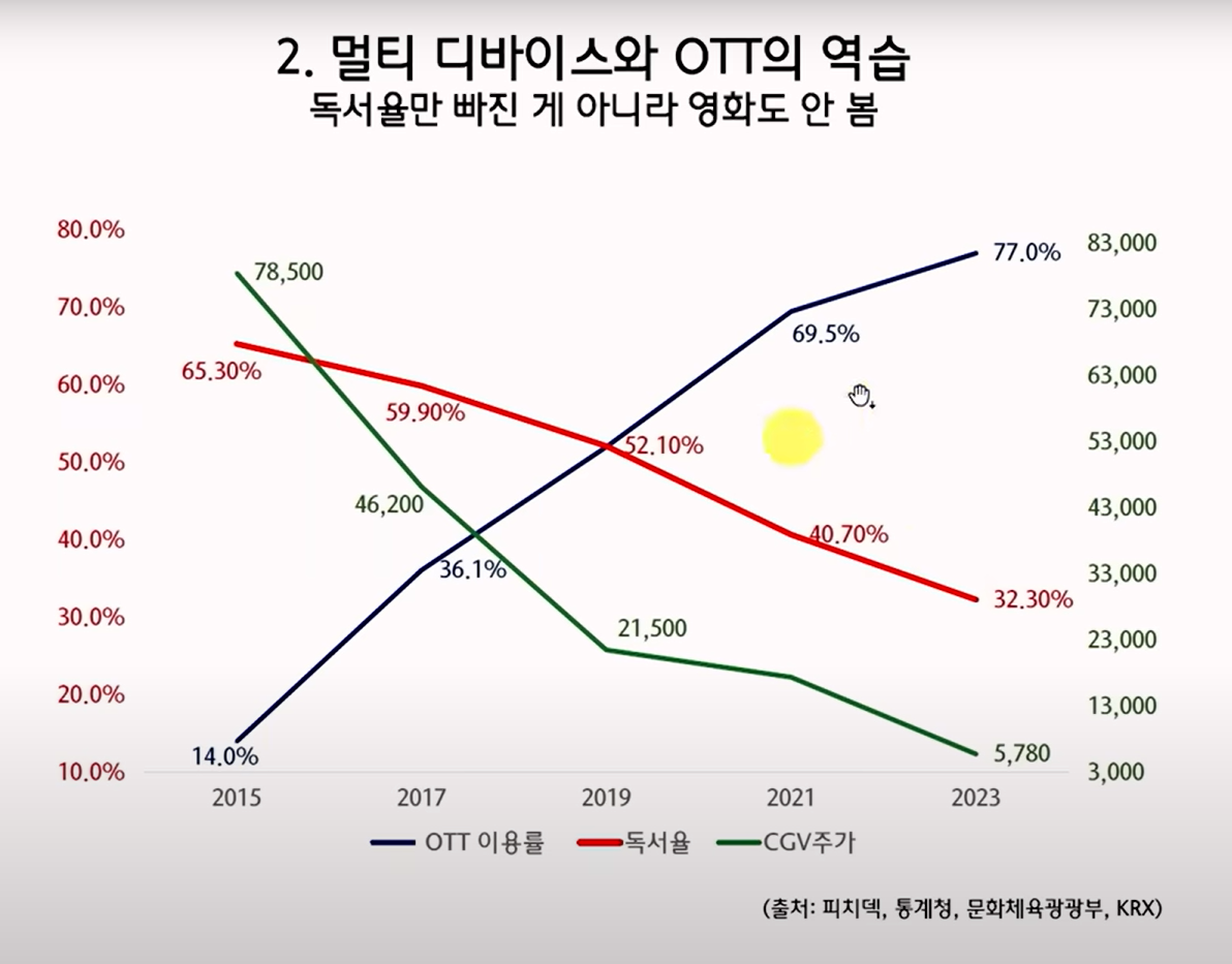 독서율 급감과 OTT·SNS 소비 증가로 인한 책 소비 감소