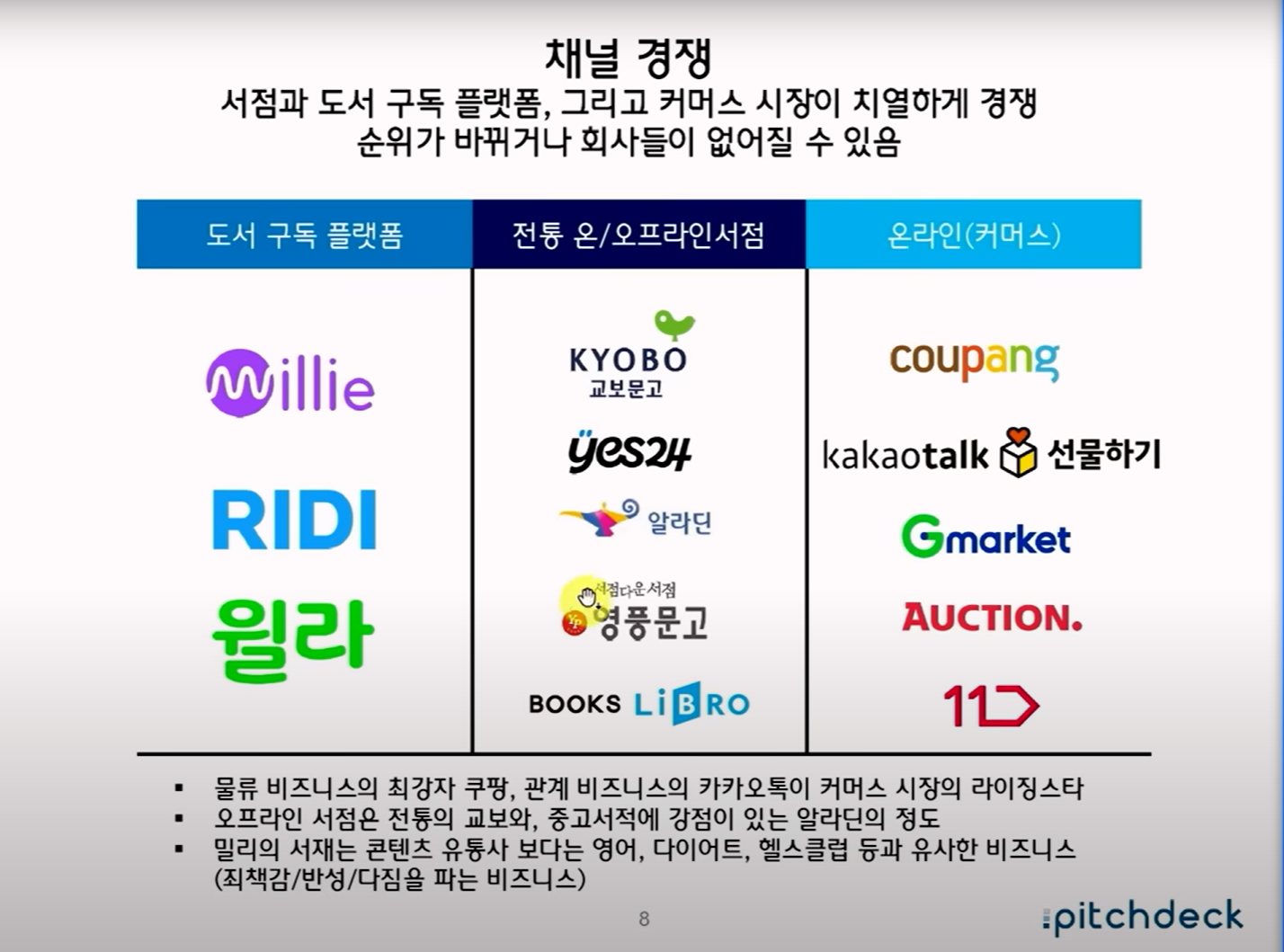 최근 서점 산업의 전반적 위기를 다룬 내용입니다. 2000년대 이후 대형서점의 전성기가 지나면서 지역 서점이 급격히 줄었고, 최근에는 온라인 서점과 쿠팡 같은 커머스 기업이 시장을 잠식하고 있습니다.