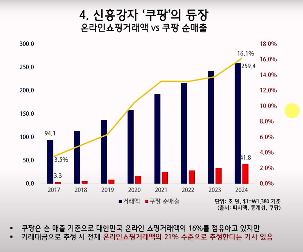 최근 서점 산업의 전반적 위기를 다룬 내용입니다. 2000년대 이후 대형서점의 전성기가 지나면서 지역 서점이 급격히 줄었고, 최근에는 온라인 서점과 쿠팡 같은 커머스 기업이 시장을 잠식하고 있습니다.