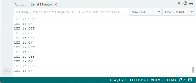 다음 코드는 FreeRTOS의 주기적 타이머를 사용하여 ESP32 내장 LED를 깜빡입니다. 이 코드를 ESP32 보드에 업로드할 수 있습니다.