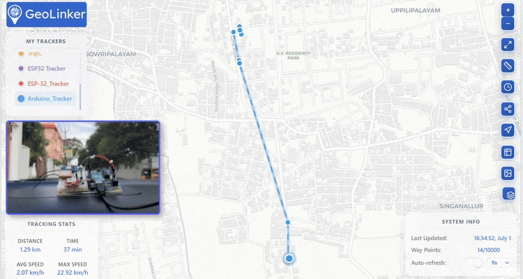 네! geoLinker.setDeviceID("tracker_1"), geoLinker.setDeviceID("tracker_2") 등을 사용하여 각 Arduino GPS 추적기 에 고유한 장치 ID를 설정하세요 . 모든 추적기는 동일한 API 키를 사용할 수 있으며 GeoLinker Cloud 대시보드에 별도로 표시됩니다.