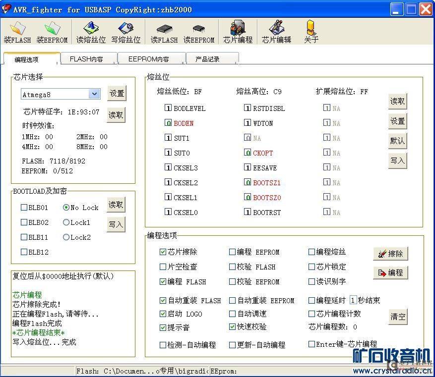 (9) 퓨즈 비트를 구성할 때는 ISP 방식을 사용하는 것이 좋습니다. 구성 도구는 BASCOM-AVR(ISP 다운로드에 제한이 없는 온라인 다운로드 체험판)과 STK200/STK300과 호환되는 다운로드 케이블을 사용합니다(4장 참조).