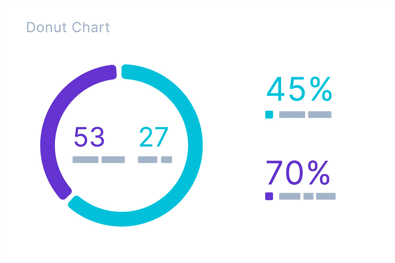 도넛형 차트는 데이터의 전체 항목 중 각 부분의 비율을 부채꼴 모양으로 배열하여 백분율로 표현하는 시각화 방법입니다. 전체에 대한 각 부문의 중심 각도의 비율을 의미하며, 각 항목의 비율을 한눈에 파악할 수 있어 통계 수치를 비교할 때 자주 사용됩니다. 산점도는 두 개의 연속적인 변수 사이의 상관관계를 한 변수를 X축에, 다른 변수를 Y축에 배치하여 시각화한 그래프입니다. 주로 각 변수의 변화에 따른 상관관계를 파악하는 데 사용됩니다. 버블 차트는 데이터의 값을 동그란 버블의 크기로 표현하는 시각화 방법입니다. 버블 차트 자체는 데이터 값의 크기만 표현할 수 있습니다. 하지만 스캐터플롯 기능을 추가하면 X축과 Y축의 변수와 해당 변수의 결과값도 표현할 수 있어 3차원 데이터를 표현할 때 유용합니다.