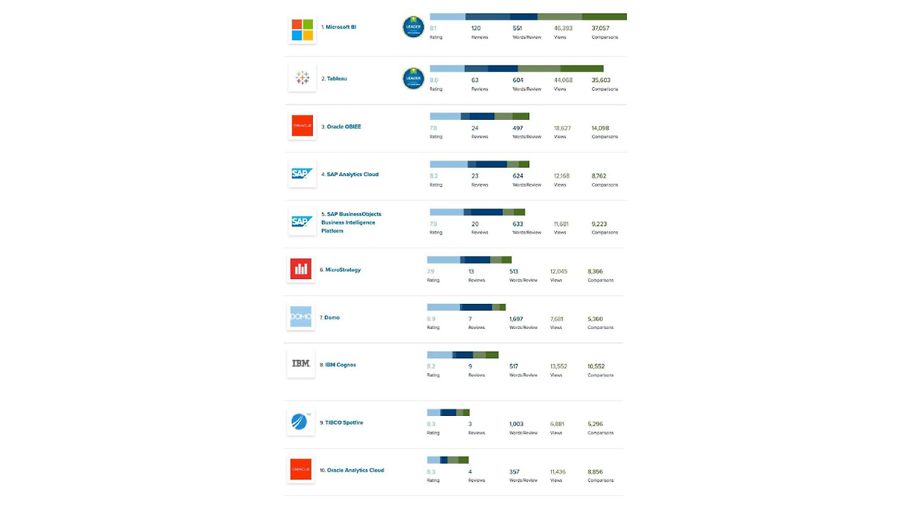 데이터 시각화의 활용도가 높아지면서 누구나 쉽게 데이터 시각화를 구현할 수 있는 다양한 솔루션이 등장했습니다. 대표적인 예로 Microsoft의 Power BI와 Tableau를 들 수 있습니다. Power BI는 언제 어디서나 모든 데이터에 접근하여 한눈에 볼 수 있는 데이터 활용 도구로 70여 종의 데이터 커넥터를 제공하기 때문에 다양한 데이터 원본을 시각화할 때 유용합니다. 마찬가지로 Tableau는 복잡한 데이터 원본을 시각적으로 분석하는 도구로서 누구나 쉽게 데이터 시각화에 접근할 수 있도록 다양한 시각화 기능을 제공합니다. 또한, 오라클 OBIEE, SAP 애널리틱스 클라우드, 마이크로스트레티지, 도모 등 다양한 데이터 시각화 솔루션이 있습니다.