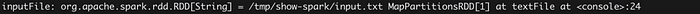 이제 명령줄에서 Spark에 작업을 제출할 수 있습니다! 아래에 표시된 명령줄을 사용하여 텍스트 파일에서 간단한 RDD를 만듭니다.