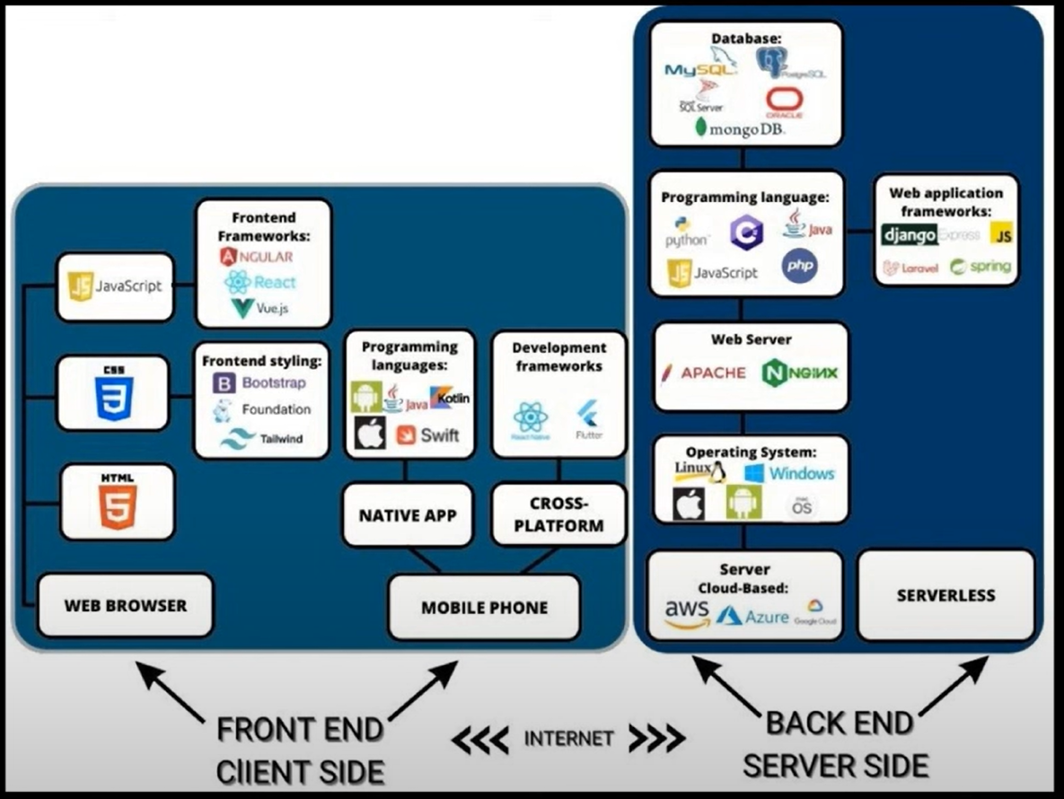이 세 가지 기술을 숙지하면 다양한 화면을 원하는 대로 구성할 수 있습니다. 더불어 다양한 프론트 엔드 기술도 결국 화면을 구성하기 때문에 배경 지식이나 용어가 서로 유사합니다. 따라서 이 새의 기본 기술을 숙지하면 향후 어떤 프레임워크 기술을 익히더라도 빠르게 익히고 활용할 수 있습니다. 물론 기본 기술만으로는 복잡한 기능을 구현하기에는 한계가 있을 수 있습니다. 그래서 프런트 엔드도 다양한 프레임워크가 존재하는데요. 예를 들면 많이 사용되는 리액트와 최신 기술인 플러터 같은 기술이 있습니다. 본 로드맵에서는 최신 프런트엔드 기술인 플로터 프레임워크 기술을 익히는데 관련 기술을 선택한 이유는 해당 단계에서 보다 구체적으로 설명을 드리겠습니다. 서비스를 제공하기 위해서는 서버에서 실행되어야 합니다. 서버는 24시간 동작하며 고정된 인터넷 주소를 가져야 하기 때문에 서비스 프로그램은 보통 노트북 같은 개인 PC가 아닌 서버라는 특별한 컴퓨터에서 구동됩니다. 그런데 최근 관련 기술이 매우 복잡해졌어요.