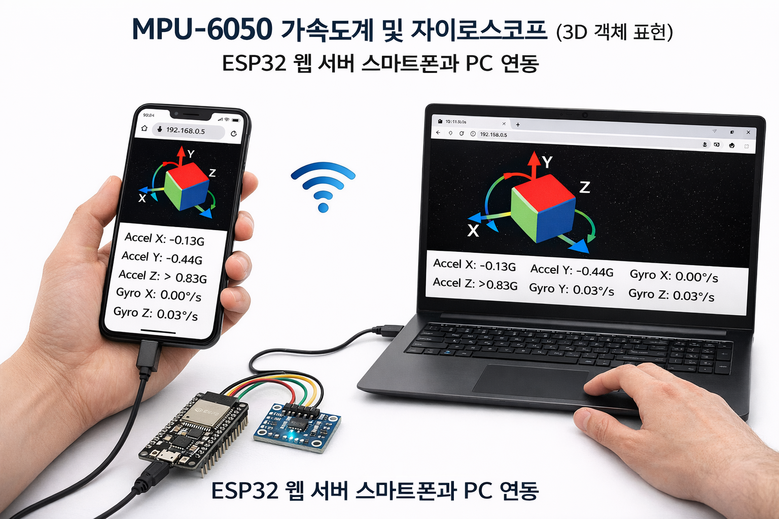 ESP32 웹 서버 (MPU-6050 가속도계 및 자이로스코프 탑재, 3D 객체 표현)