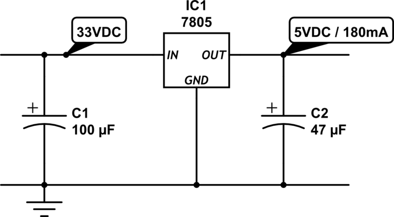 첫 번째 커패시터인 0.33uF 세라믹 커패시터는 전압 소스(이 경우 9볼트 배터리) 뒤와 LM7805 레귤레이터 입력 전에 연결됩니다. 이 커패시터는 전압 소스(배터리)에서 발생하는 모든 노이즈를 필터링하는 역할을 합니다. 전압 조정기는 깨끗한 DC 신호가 공급될 때 가장 잘 작동하며 가장 효율적입니다. DC 라인 전압에 교류 노이즈(리플)가 발생해서는 안 됩니다. 커패시터는 본질적으로 바이패스 커패시터 역할을 합니다. 전압 신호의 AC 신호(전압 신호의 노이즈)를 접지로 단락시키고 신호의 DC 부분만 레귤레이터로 이동합니다.