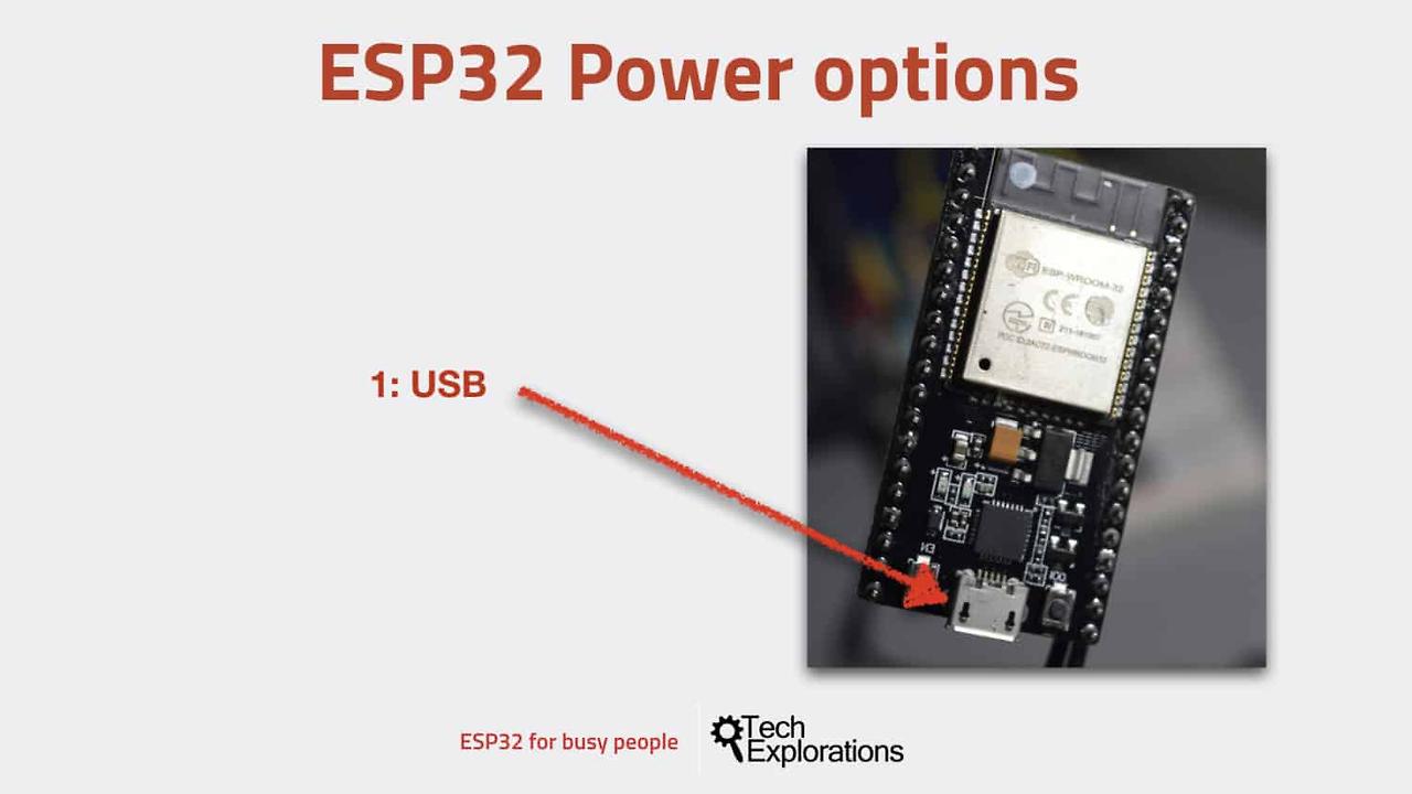 ESP32 개발 키트에 전원을 공급하려면 세 가지 옵션이 있습니다.
