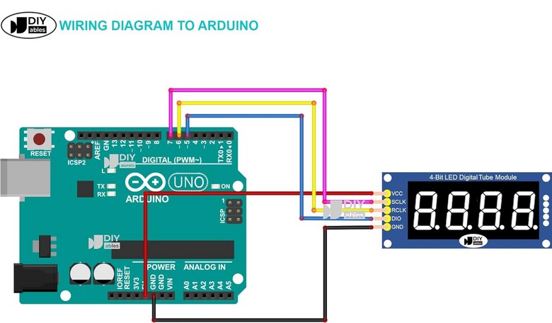 - Arduino, ESP32, ESP8266, 라즈베리 파이 또는 5V 또는 3.3V 마이크로 컨트롤러용 7세그먼트 LED 디스플레이.