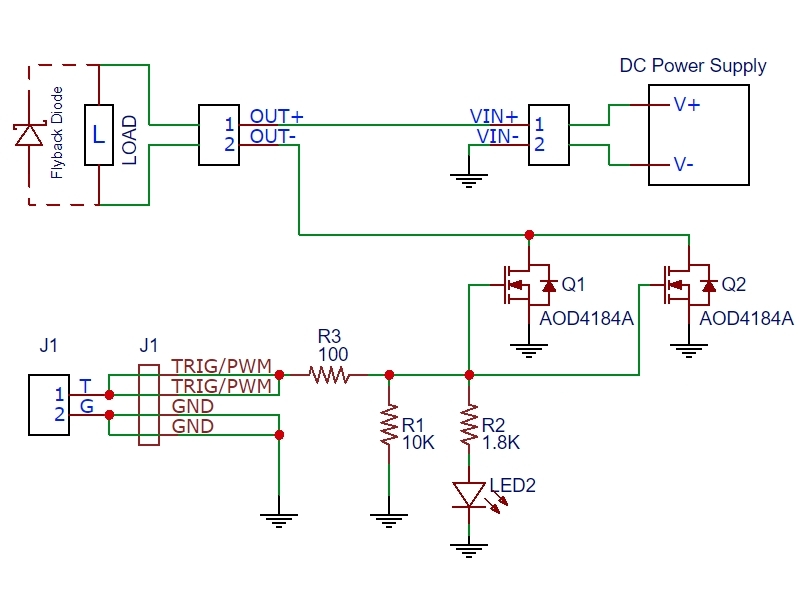- 모듈에는 MOSFET을 보호하는 외부 플라이백 다이오드가 없습니다.