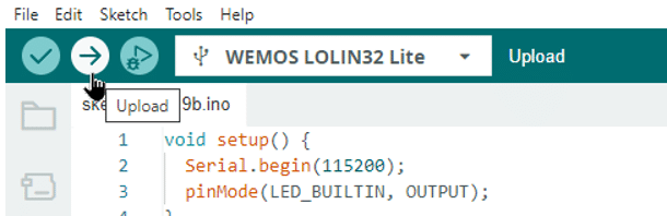 목록에서 보드를 찾습니다. 이 예에서는 WEMOS LOLIN32 Lite 보드를 사용하므로 해당 보드를 선택합니다. 그러나 다음 프로그래밍 예에서는 거의 모든 다른 ESP32 보드가 작동합니다. 컴퓨터에 실제로 연결한 보드를 선택했는지 확인하세요.