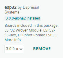 설치가 완료되면 Boards Manager가 이와 같이 표시되어야 하지만 실제 버전(여기서는 3.0.0-a)은 다를 수 있습니다.