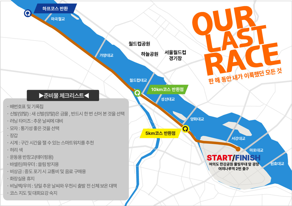 목표 기록은 5분 페이스로 달릴 예정이니, 하프 코스 1시간 45분이다.