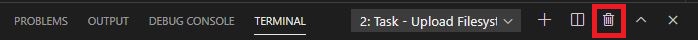 이 오류는 VS Code 또는 다른 프로그램에서 보드와 직렬 연결이 열려 있음을 의미합니다. 보드 직렬 포트를 사용하고 있을 수 있는 모든 프로그램을 닫고 VS Code에서 모든 직렬 연결을 닫았는지 확인합니다(터미널 콘솔에서 휴지통 아이콘을 클릭).