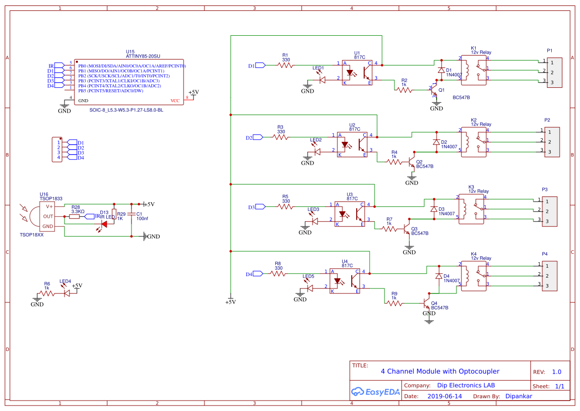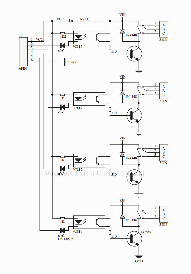 4 채널 릴레이 모듈 회로