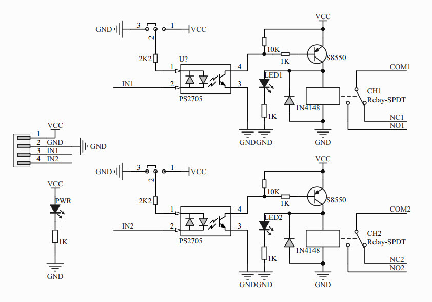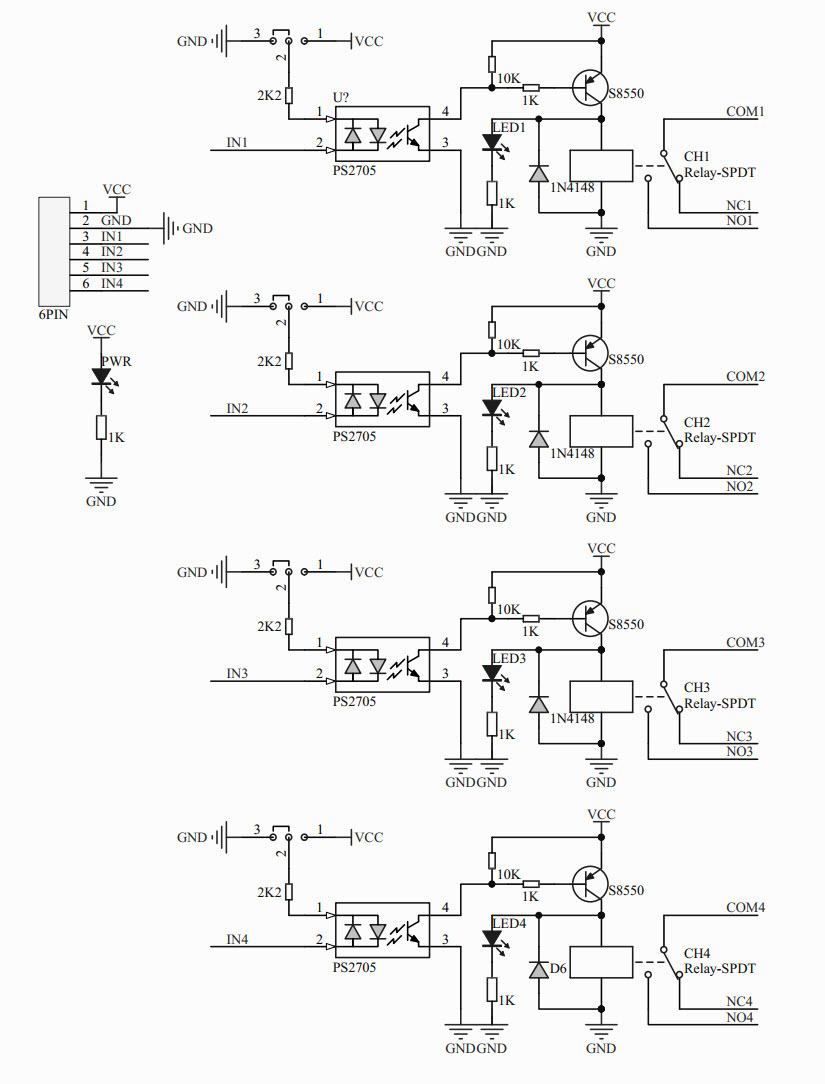 4. NC2: 채널 2 릴레이 정상 폐쇄 핀.