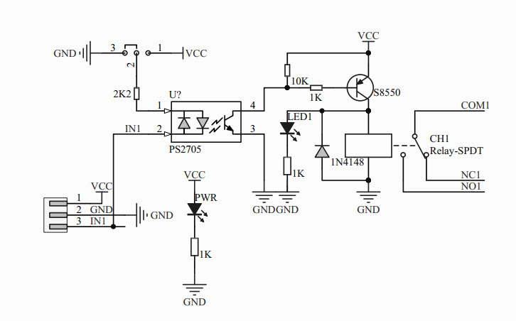 모듈은 정품 릴레이, 일반적으로 개방된 인터페이스를 사용