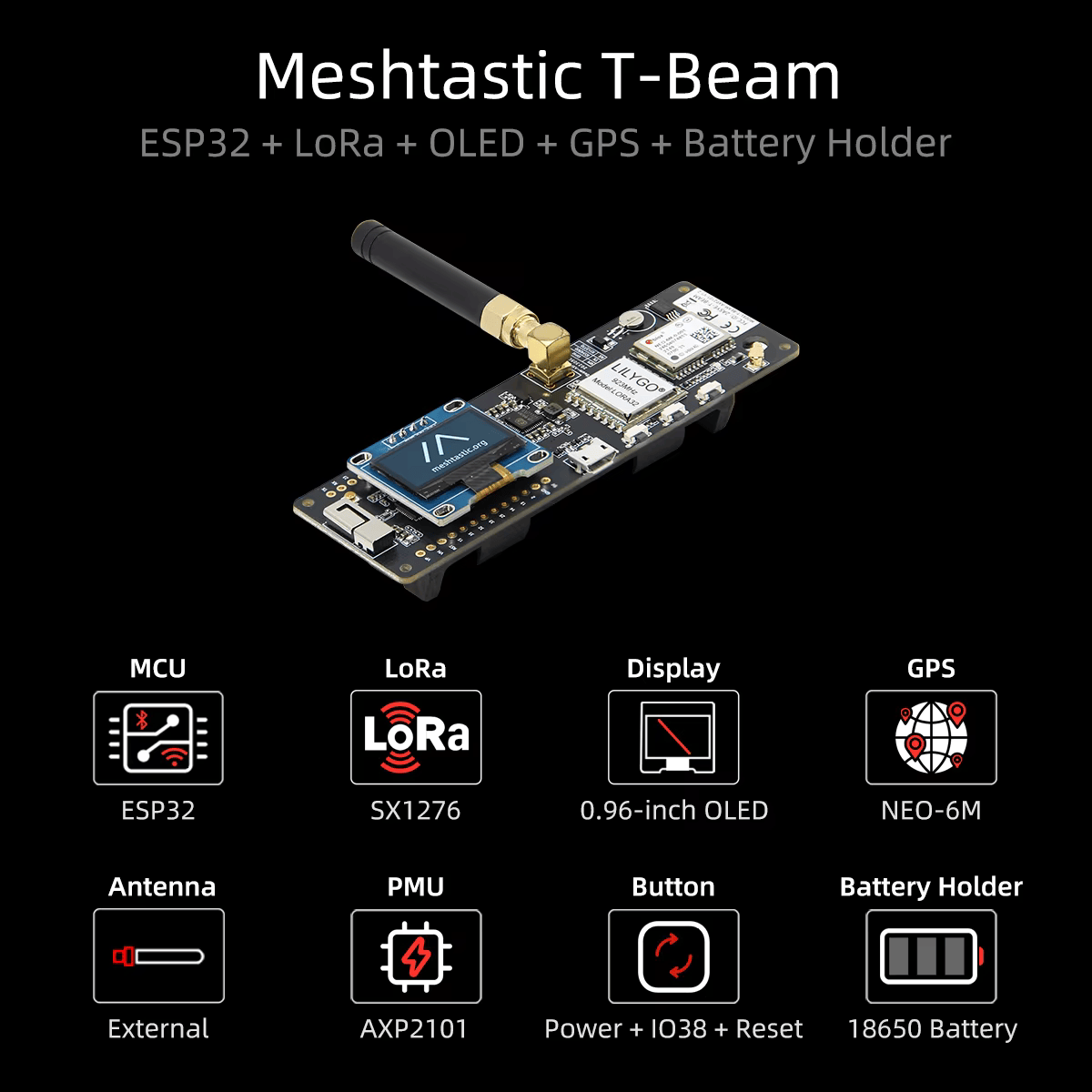 Meshtastic T-Beam ESP32 LoRa 개발 보드, 433, 868, 915MHz LoRaWAN 모듈 회로, WiFi, 블루투스, GPS, OLED