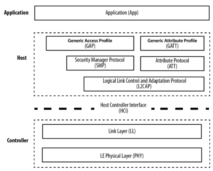BLE 프로토콜 스택은 Controller, Host, Application으로 나뉜다.