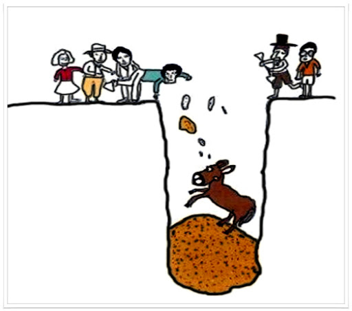 어느 날 한 농부의 당나귀가 우물에 빠졌습니다. 그 동물은 몇 시간 동안 큰 소리로 울었고, 농부는 당나귀를 꺼내기 위해 무언가를 찾으려고 했습니다.