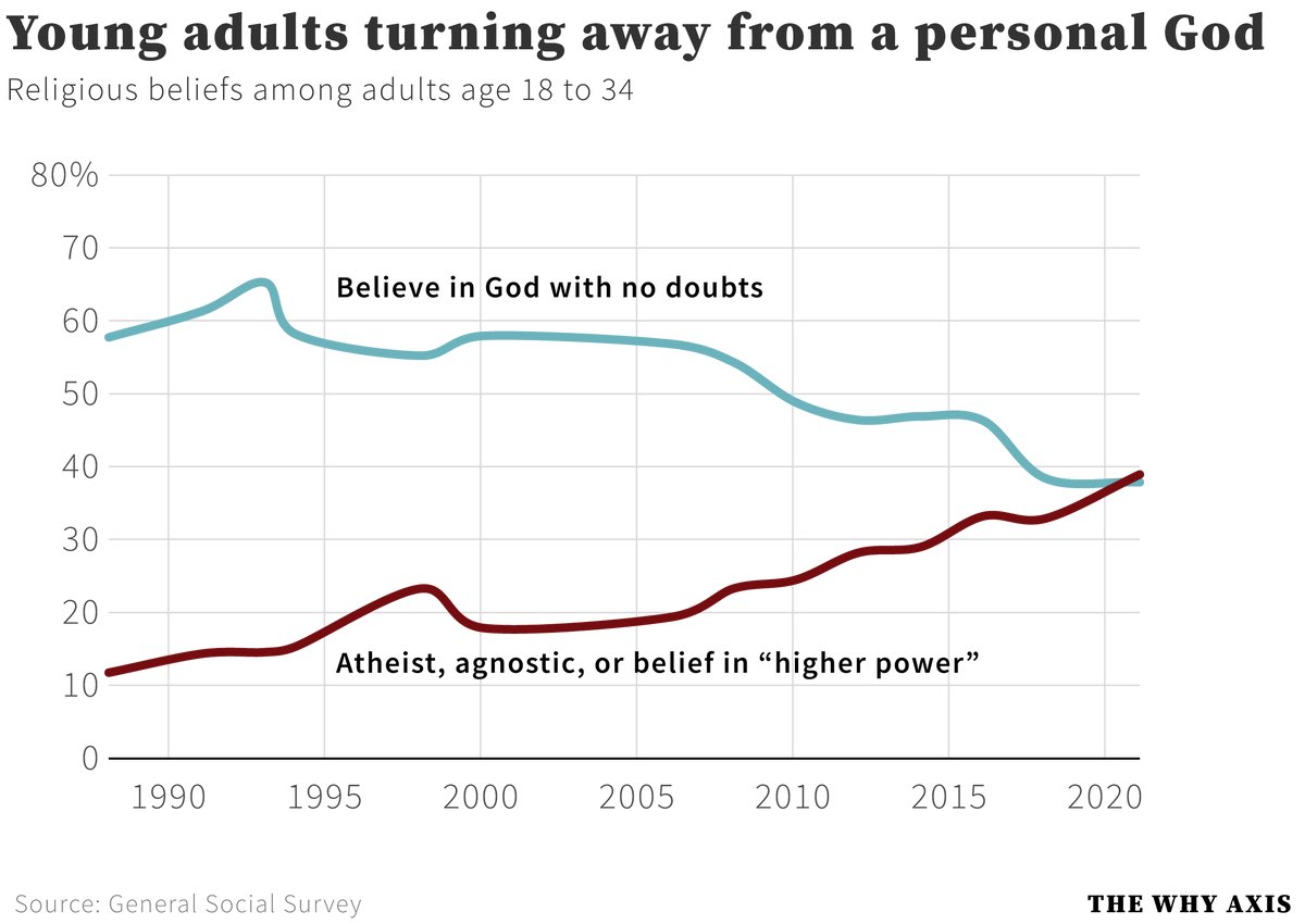 서구에서 조직 종교는 악마화되었고, 세속주의와 무신론은 유일하게 "깨달은" 세계관의 지위로 격상되었습니다. 신앙에 대한 이러한 공격으로 인해 사회는 도덕적 나침반 없이 방치되었고, 물질주의와 쾌락주의가 지침 원칙으로 뿌리를 내렸습니다.
