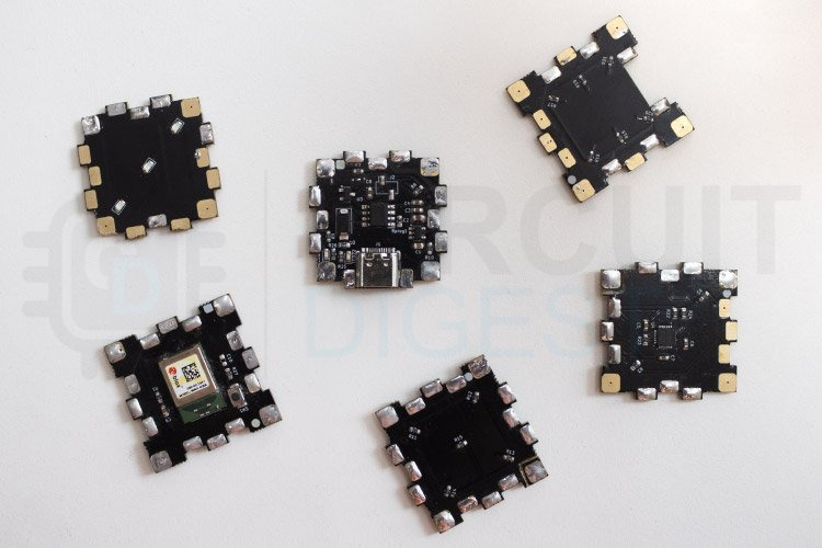 이 프로젝트에서는 맞춤형 PCB를 만들기로 했습니다. 이렇게 하면 최종 제품이 가능한 한 컴팩트하고 조립 및 사용이 간편해집니다. PCB는 KiCad로 설계되었습니다. 모든 설계 파일은 이 기사 아래에 링크된 GitHub 리포에서 다운로드할 수 있습니다. PCB의 각 면의 치수는 약 30mm x 30mm입니다. 총 6개의 PCB가 있습니다. 그러나 제조를 위해 63x96mm 크기의 6개 모두를 포함하는 패널을 만들었으며, 쉽게 분리할 수 있도록 스탬프 구멍이 있습니다.