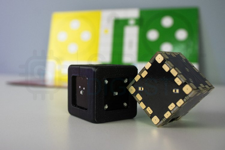 다음은 3D 인클로저가 있는 완전히 조립된 스마트 LED 주사위입니다.