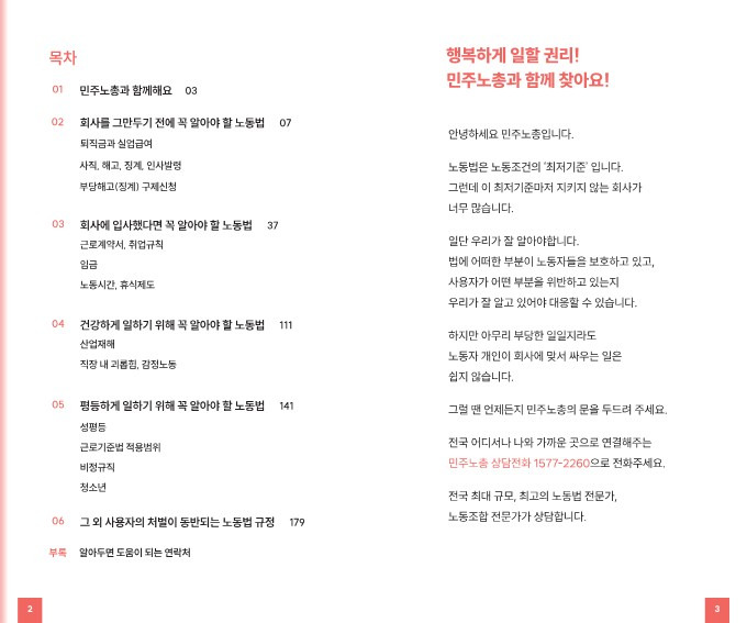 나 지난주에 시위갔을때 민주노총 부스에서 "2024 노동자 권리 찾기 안내 수첩" 이라는 책자 무료로 나눠주길래 유용해보여서 받아왔는데
