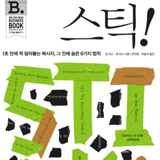 근면 성실해라보다 개미와 배짱이 이야기가 인상 깊죠. 세월이 지나도 살아남는 건 이야기입니다. 현대 사회에서 가장 큰 가치를 창출하는 건 메시지입니다. 메시지는 사람들 마음을 닫을 수도 열 수도 있습니다. 지갑을 열 수도, 닫을 수도 있죠. 그러니 사람들에게 강력한 메시지를 전할 수 있는 능력이 성공을 결정합니다. 석세스 공식에 따라 강력한 스티커 메시지를 던지세요. 가장 중요한 단 하나 핵심 메시지에만 집중하는 간단한 메시지를 던지세요. 의외성을 통해 예상을 깨 관심을 사로잡으세요. 장황한 설명, 맥락 없는 강조보다는 스토리를 활용하세요. 스틱은 수많은 기업가들이 최고의 비즈니스 명조로 손꼽는 성공 필독서입니다. 꼭 사업을 하지 않더라도 대인관계, 회사 내 의사소통, 프레젠테이션, 글쓰기 등 다방면에 활용 가능한 사기급 기술을 담고 있는 책입니다. 분야에 상관없이 보다 뛰어난 성과 역량을 원하시는 모든 분들께 이 책을 강력히 추천합니다.