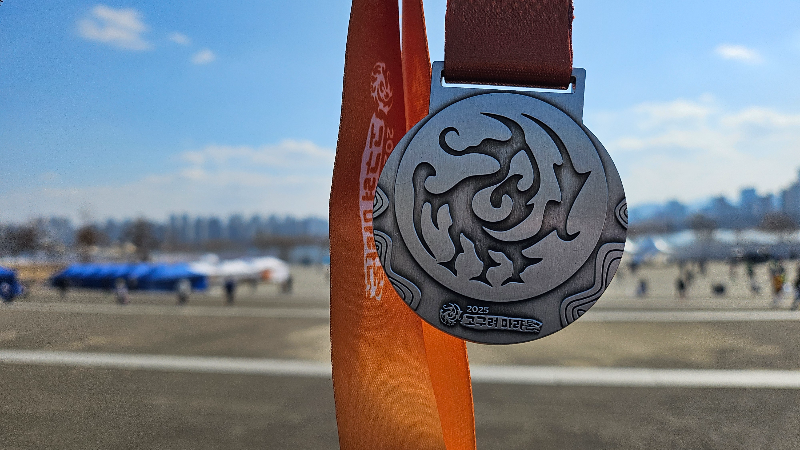 마라톤은 단순히 달리는 것이 아니라 무엇이든 할 수 있다는 것을 스스로에게 증명하는 것입니다. 완주했다는 자부심을 가지고 메달을 착용하세요!