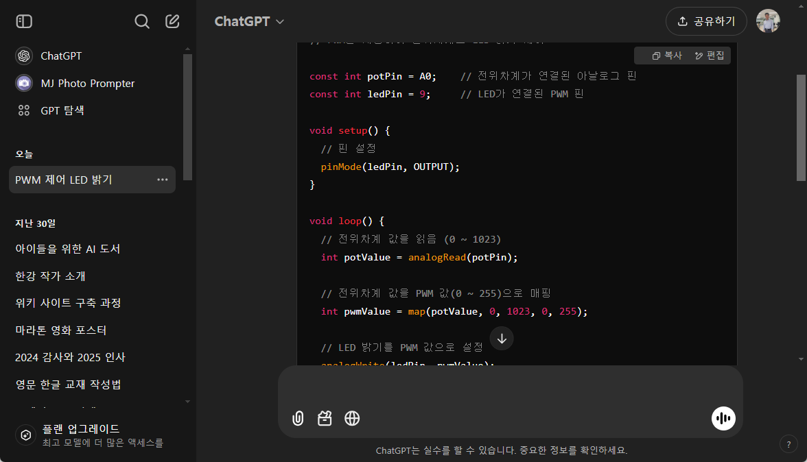 이제 ChatGPT에서 Arduino와 주변 장치에 대한 코드를 작성해 보겠습니다!