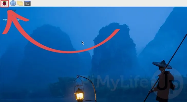 이 인터페이스를 열려면 왼쪽 상단 모서리에 있는 Raspberry 아이콘을 클릭하여 시작 메뉴를 불러옵니다.