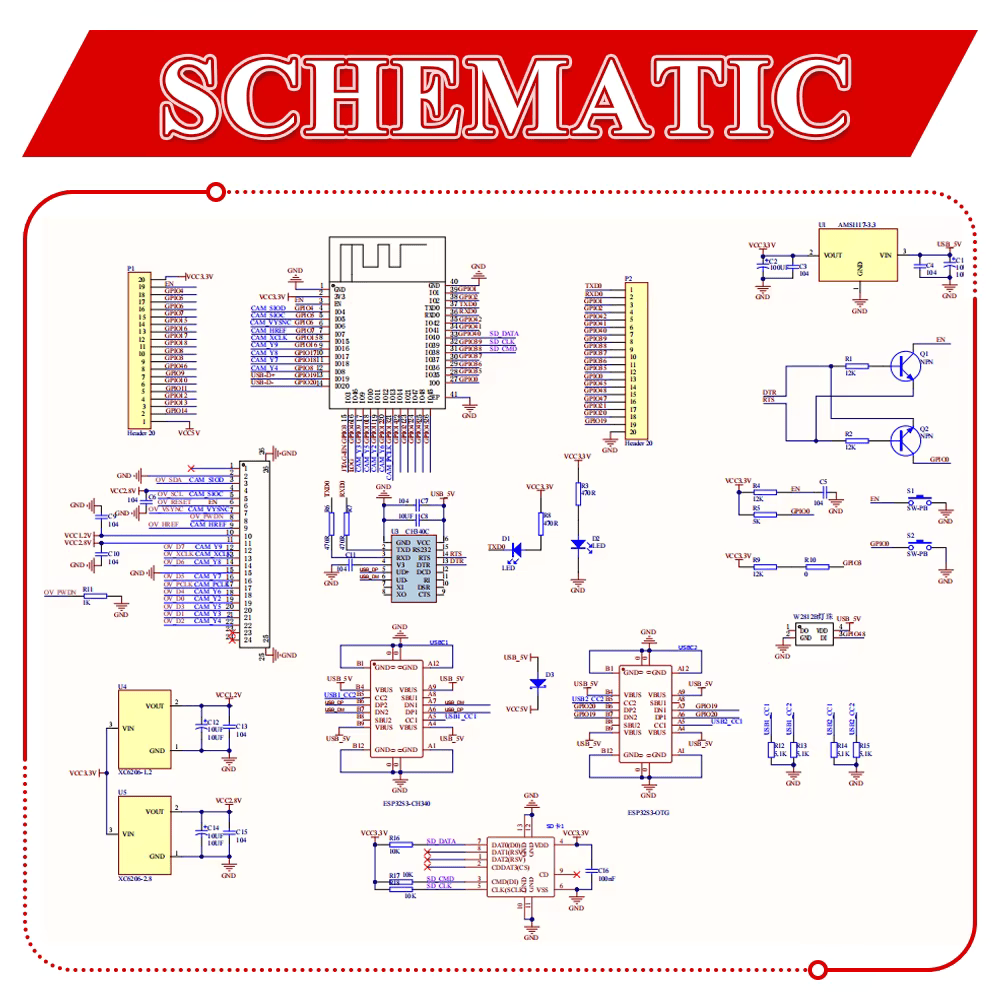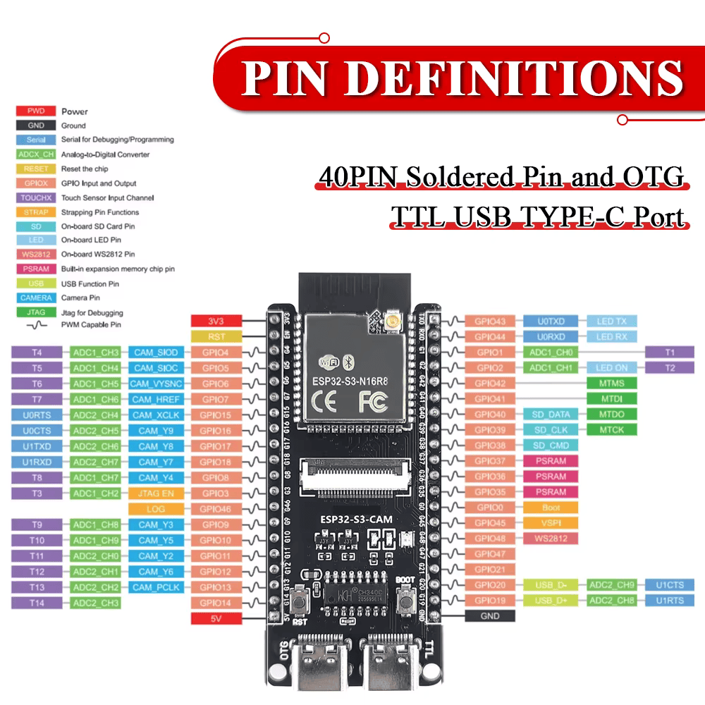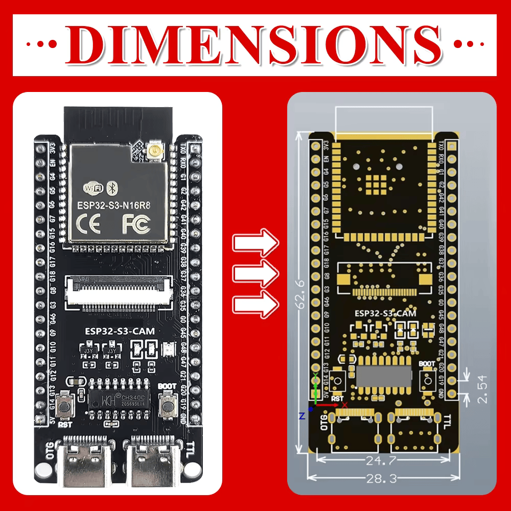 ESP32 S3 Development Board with IPEX 2.4G Wifi Module for Camera Module OV2640 8MB PSRAM 16MB FLASH ESP32 S3 N16R8 CAM Type-C
