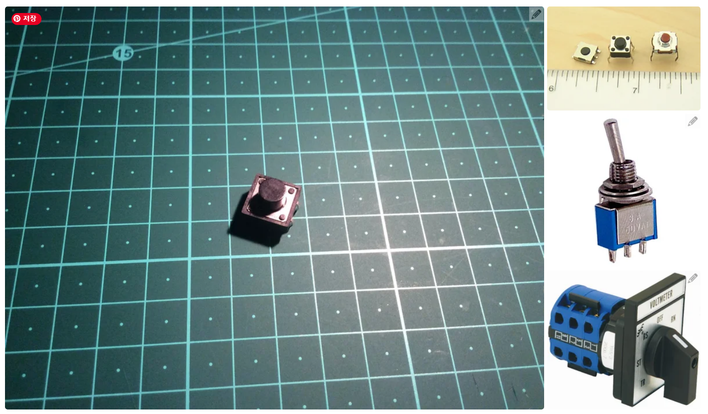 - 푸시 버튼 스위치: 푸시 버튼 스위치는 눌렀을 때 0 상태가 되지만 놓으면 자연스러운 1 상태로 돌아가는 2위치 장치로, 키보드(버튼)에서 가장 흔히 볼 수 있습니다.