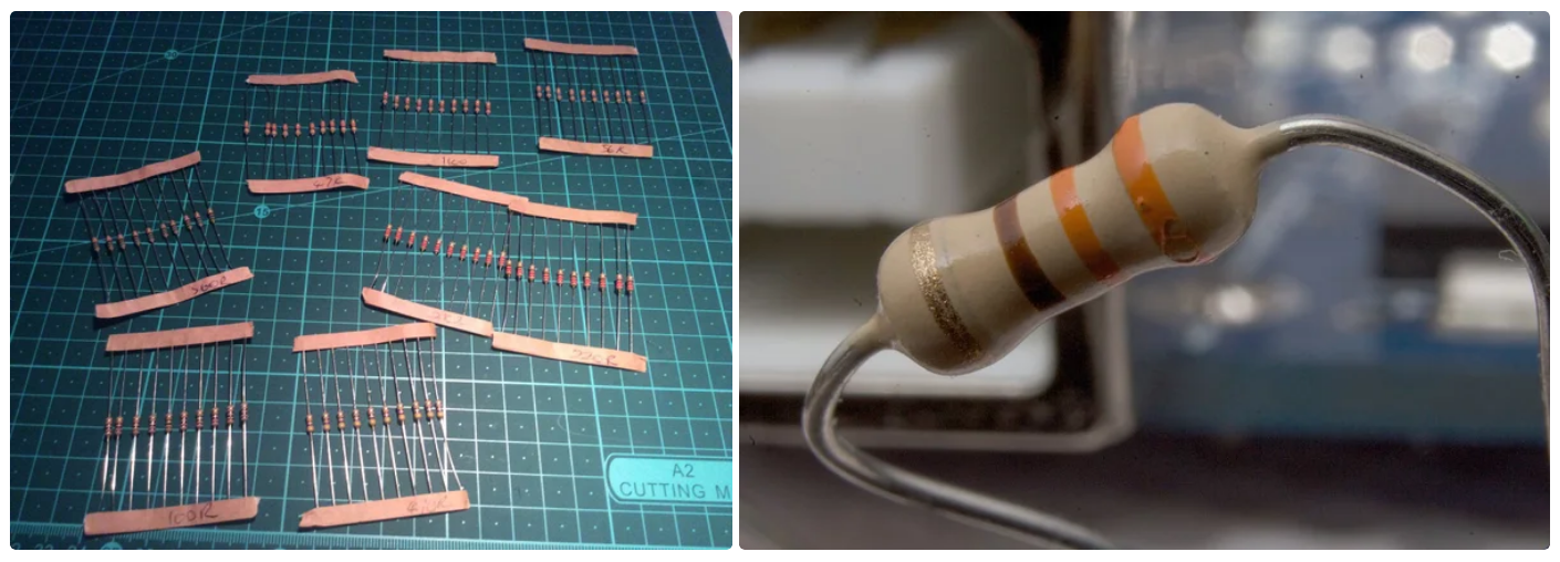 저항기는 주어진 시간에 흐를 수 있는 전류량과 전압을 제한하는 데 사용되는 수동 2극 구성 요소입니다. 다른 저항기는 다른 저항기보다 더 많이 저항할 수 있습니다. 저항기의 저항을 계산하는 방법은 저항기의 본체에 있는 4개의 줄무늬를 보는 것입니다. 다른 색상은 저항을 나타냅니다. 색상 코드를 계산하려면 다음과 같은 저항기 계산기를 사용할 수 있습니다.