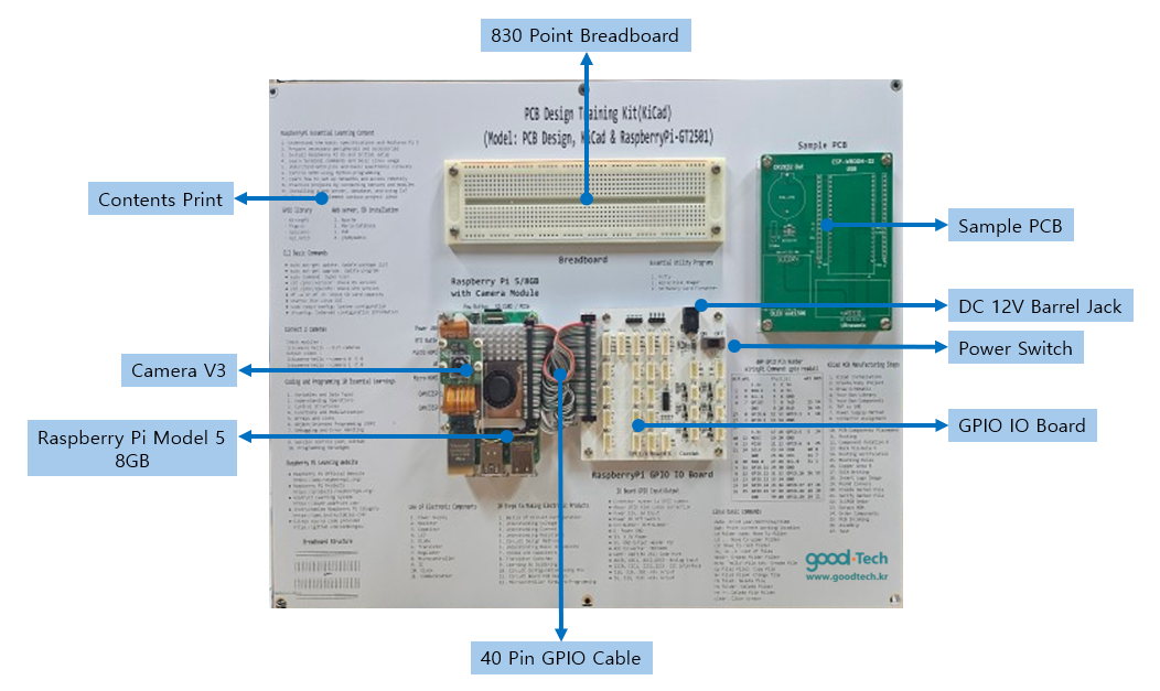 - 실습 키트 설명이다. PCB Design 시스템 제품 설명, 구성, 구조, 사용법 등에 대해 상세히 설명한다. 잘난 척하지 않는다.