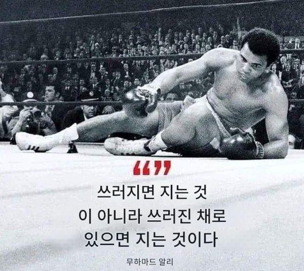 '성공은 항상 이기는 것으로 이루어지지 않습니다. 진정한 성공은 우리가 실패한 후 일어설 때 옵니다. 저는 제 승리에 감사하지만, 특히 제 패배에 감사드립니다. 패배는 저를 더 열심히 일하게 만들었기 때문입니다. 정상에서 시작하는 사람은 없습니다. 당신은 스스로 올라가야 합니다. 어떤 산은 다른 산보다 높고, 어떤 길은 다른 길보다 더 가파릅니다. 어려움과 좌절이 있지만, 그것들이 당신을 멈추게 할 수는 없습니다. 가장 가파른 길에서도 뒤돌아선 안 됩니다. 계속 올라가야 합니다. 산 정상에 도달하려면 모든 바위를 올라야 합니다.' - 무함마드 알리 Muhammad AIi