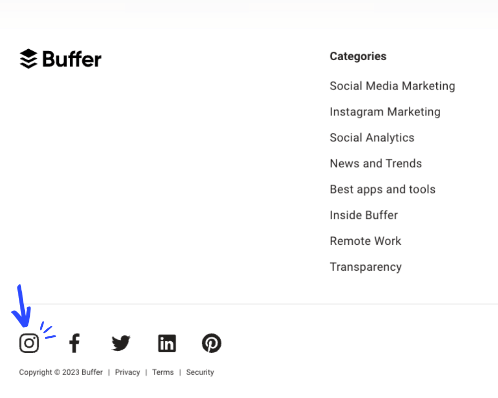 예를 들어 Buffer에서는 웹사이트 바닥글에 Instagram 링크를 추가합니다.