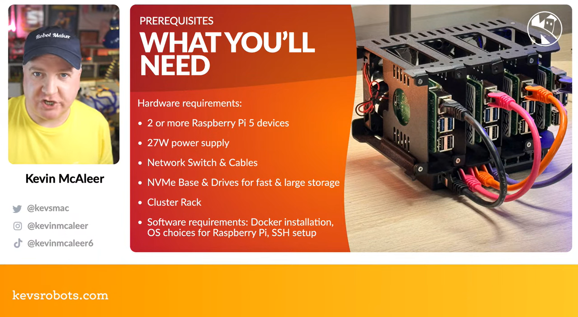 이 과정에서는 첫 번째 라즈베리파이 5 설정부터 복잡한 애플리케이션을 Docker Swarm 클러스터에 배포하는 것까지 모든 것을 다룹니다. 이 과정을 마치면 Docker Swarm의 작동 방식, 서비스를 동적으로 관리 및 확장하는 방법, 클러스터를 건강하고 안전하게 유지하는 방법에 대해 깊이 있게 이해할 수 있습니다.