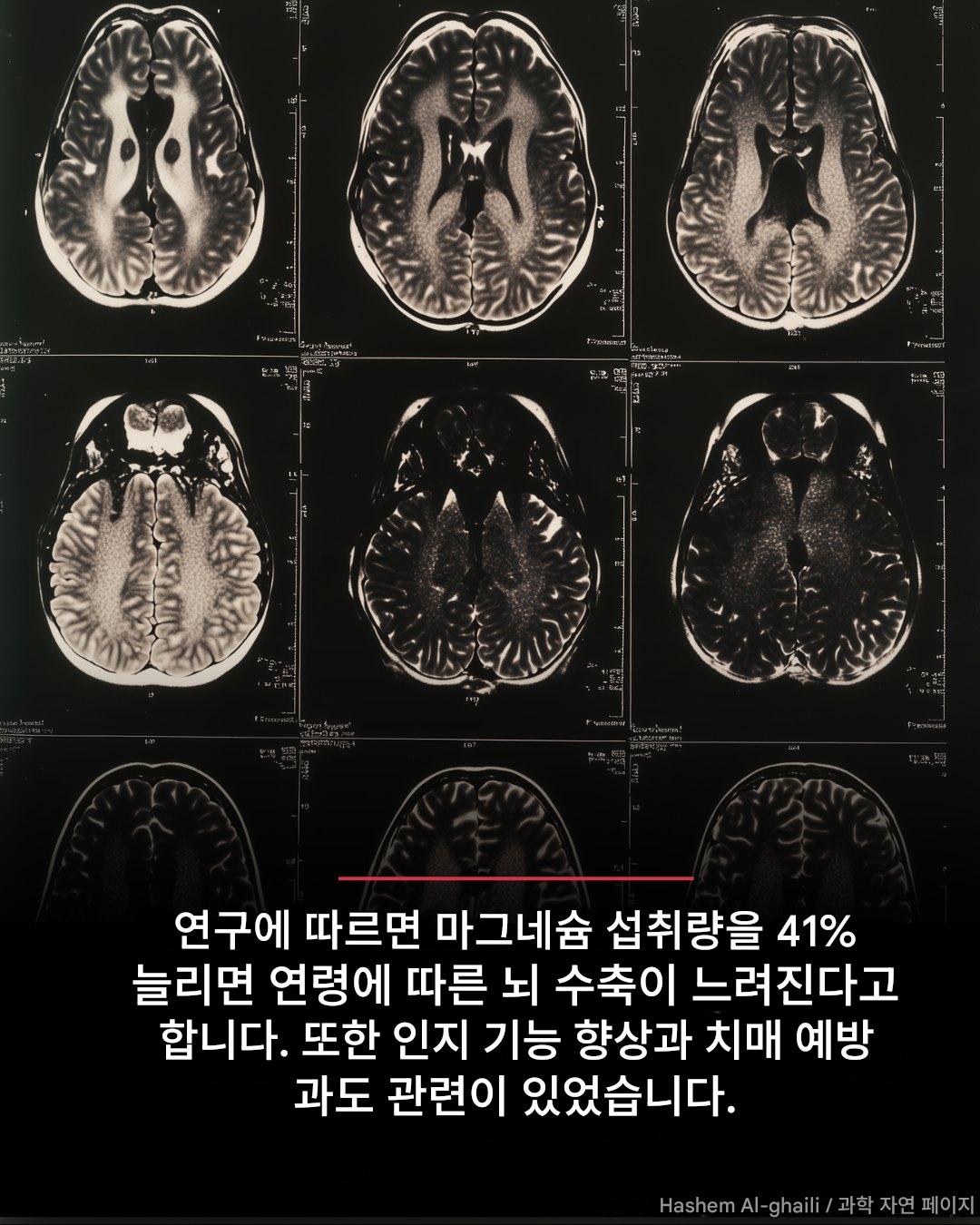 연구에 따르면 고마그네슘 식단은 뇌 노화를 늦추고 치매 위험을 낮출 수 있다고 합니다.