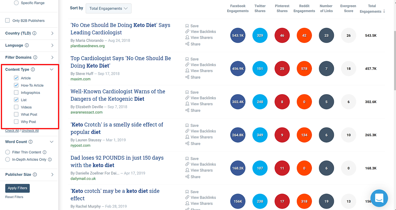 Semrush.com(무료 등록 필요)으로 이동하여 쓰고 있는 내용의 최상위 키워드를 입력하여 측정할 수 있습니다. 예: "케토 다이어트"