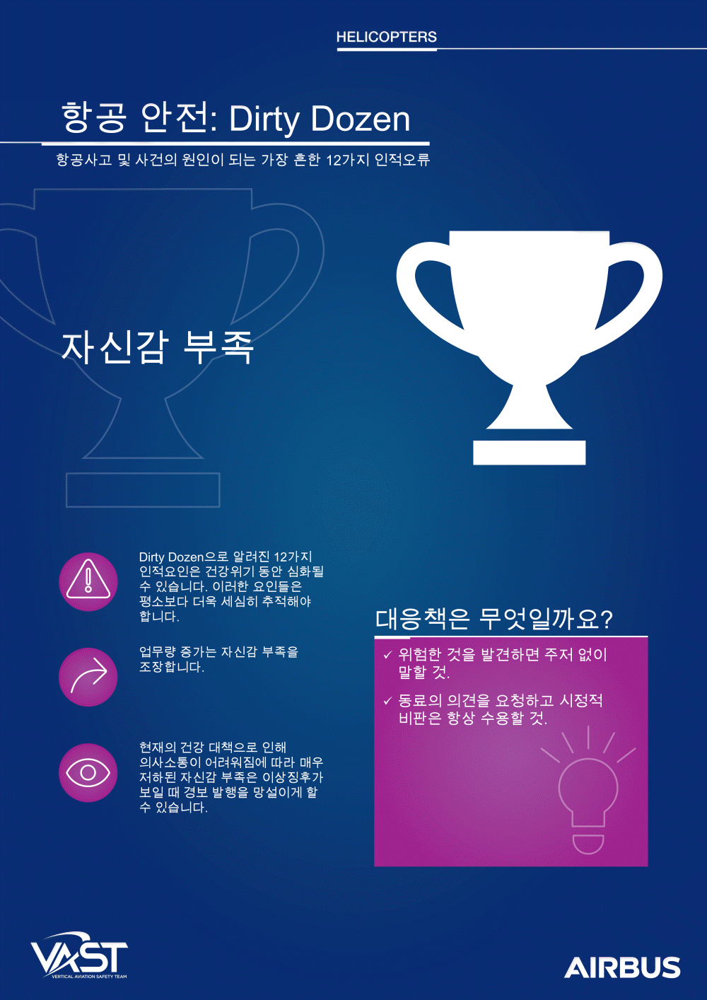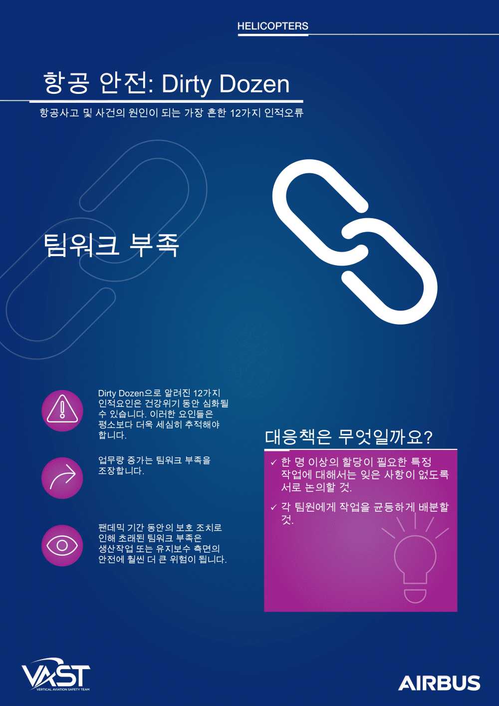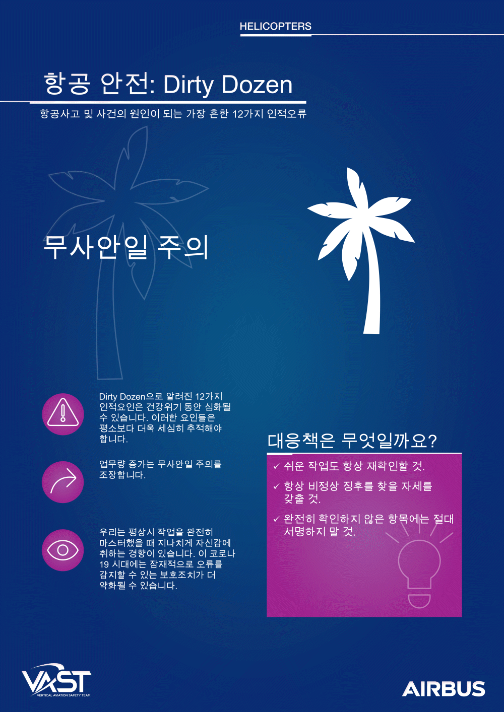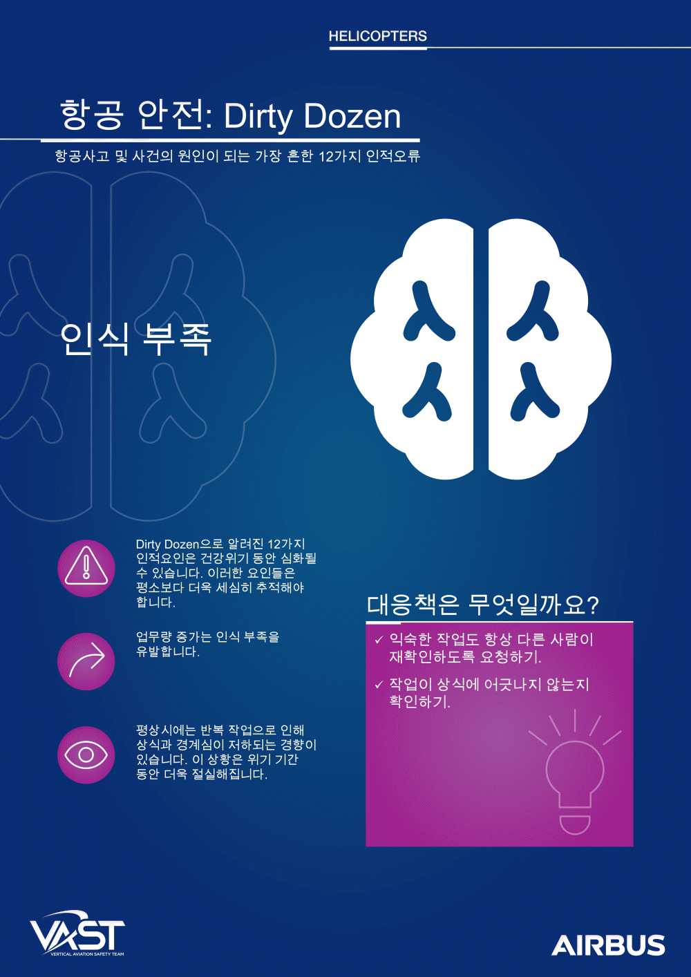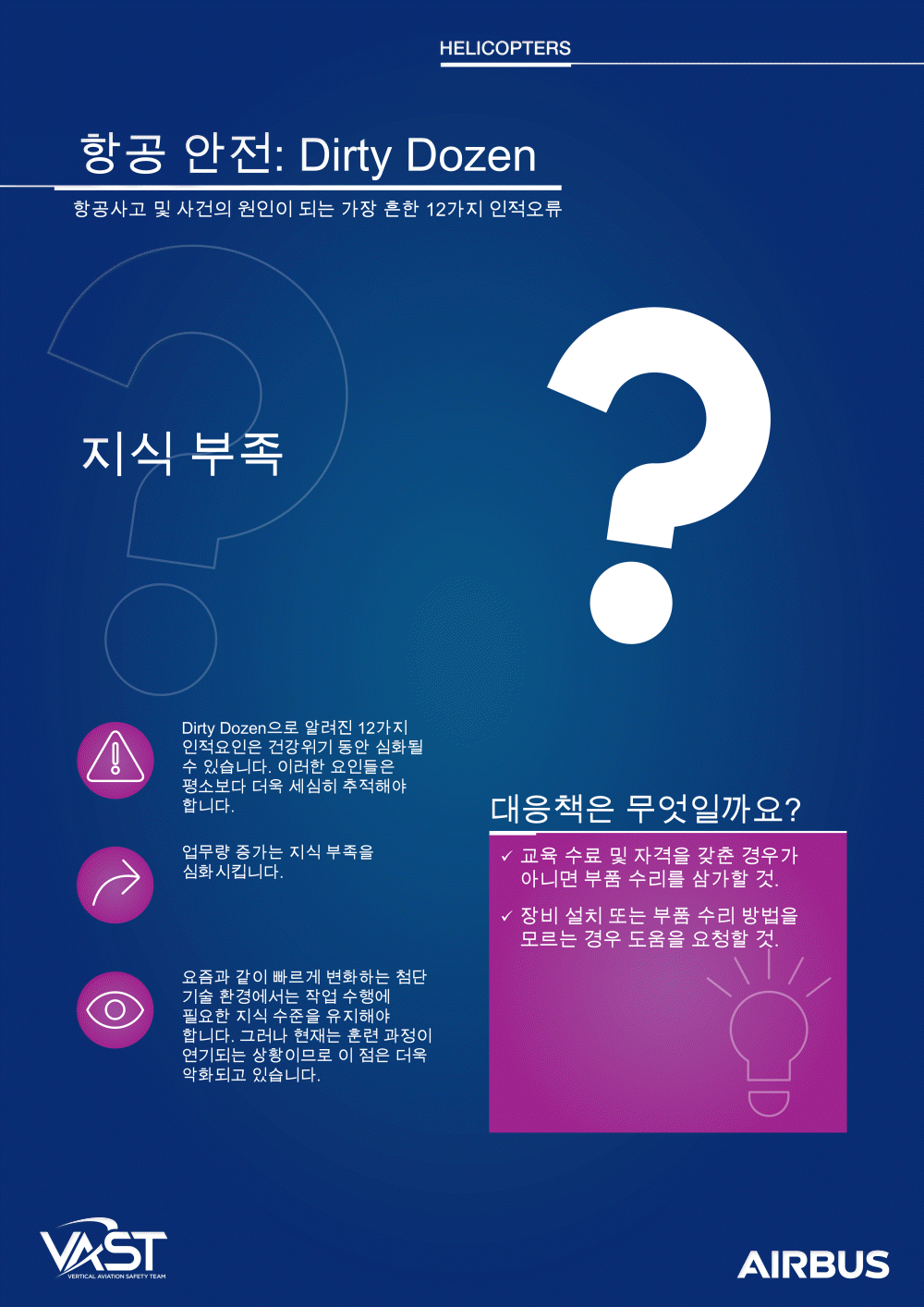 이러한 인적 요소는 항공 안전을 지원하거나 방해할 수 있습니다. 더티 다즌을 해결함으로써 인식과 안전 우수성 문화를 보장합니다.