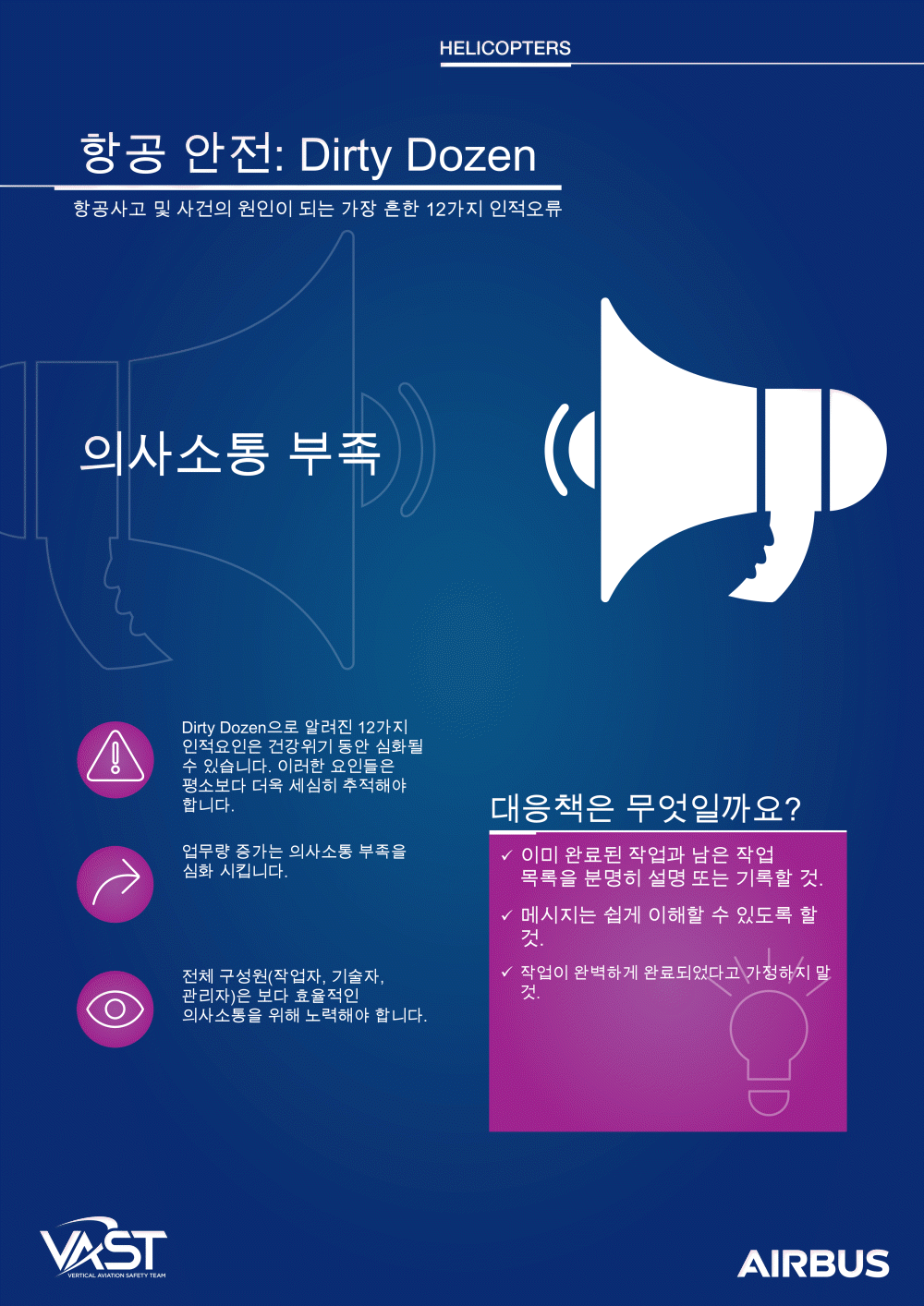 항공에서 인적 요소를 이해하는 것은 실수를 예방하는 데 중요합니다. 더티 더즌은 항공 안전에서 인적 오류의 12가지 일반적인 원인을 나타냅니다.