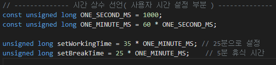 unsigned long setWorkingTime = 25 * ONE_MINUTE_MS; // 25분으로 설정