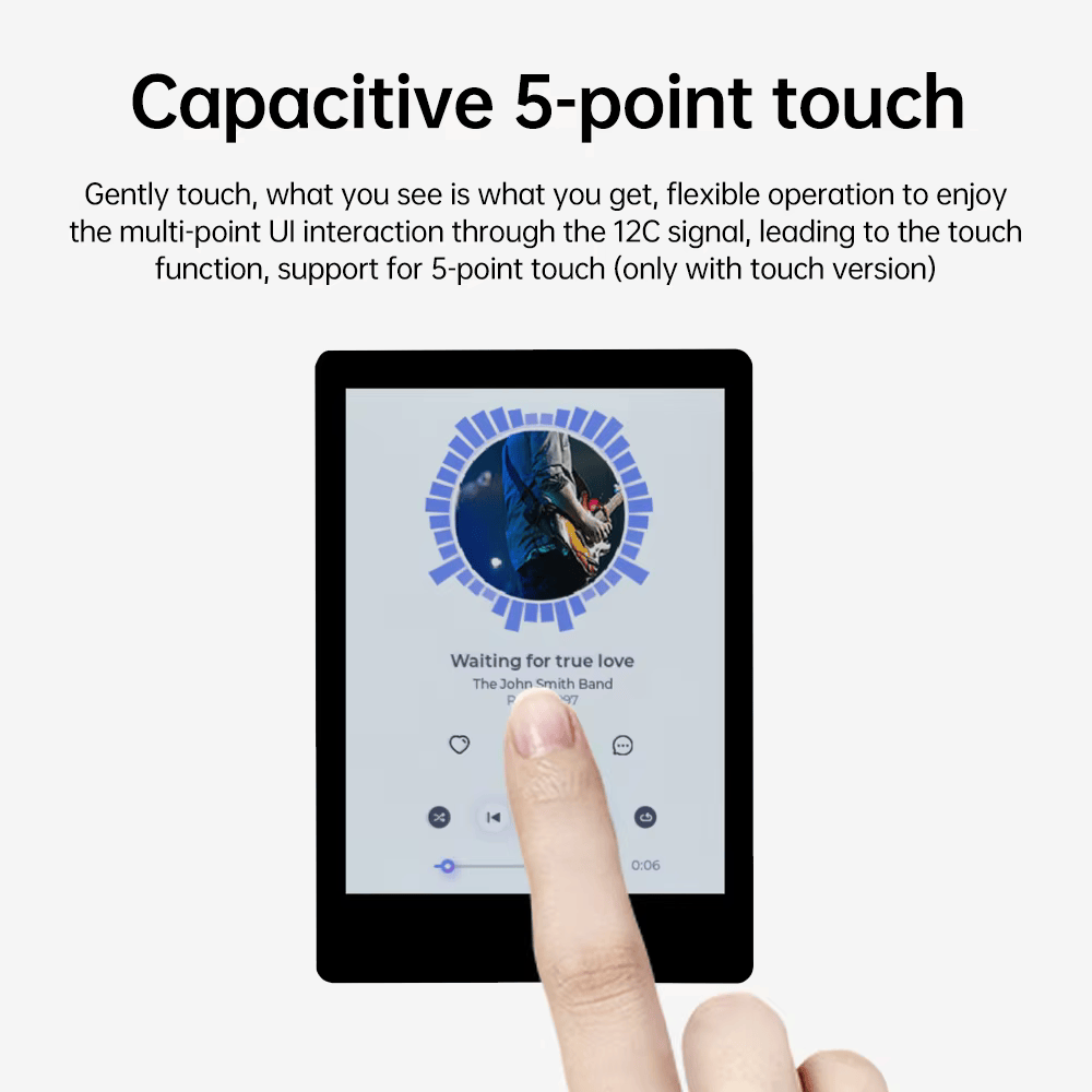 4. 멀티 터치 경험: I2C 를 통해 제어되는 5 포인트 용량 성 터치 (터치 버전 만 포함) 지원, 부드러운 작동 및보다 유연한 UI 상호 작용.
