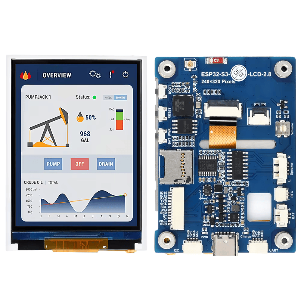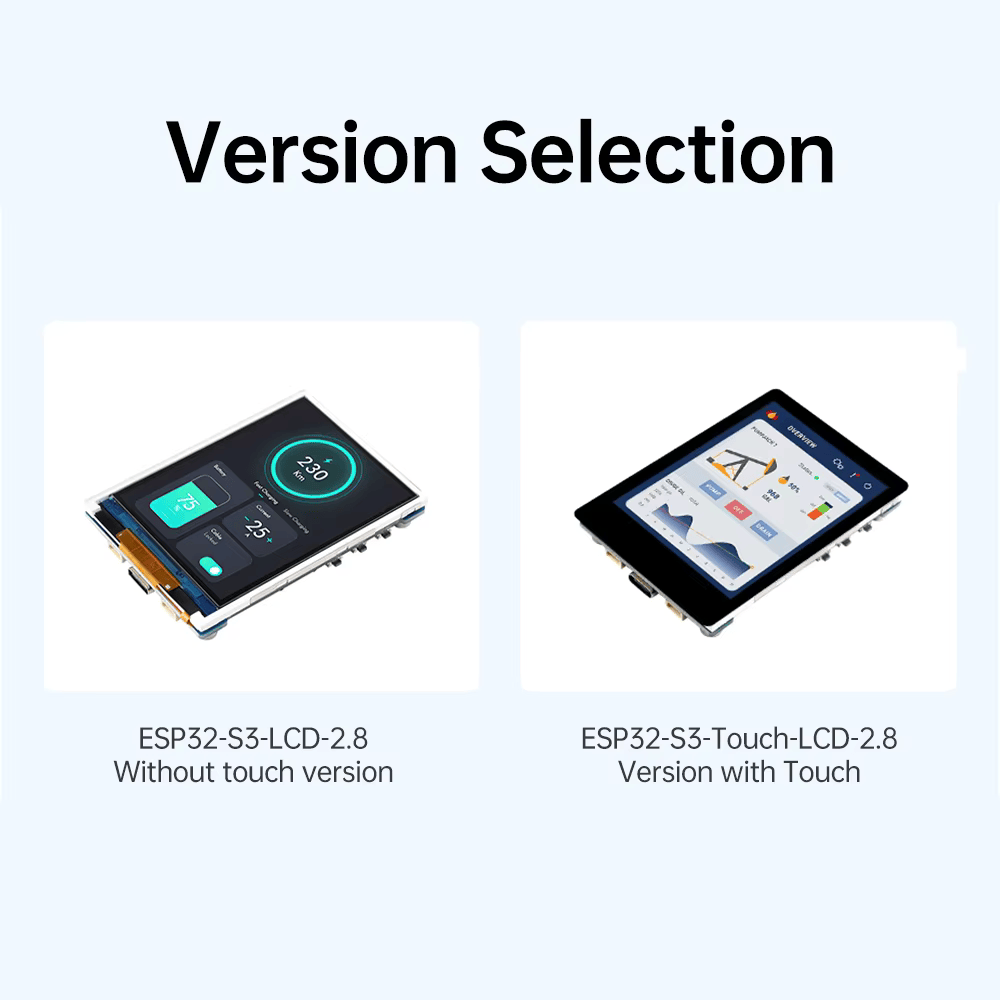 이 제품은 2.4GHz Wi-Fi와 BT BLE 5 를 지원하는 마이크로 컨트롤러 개발 보드입니다. 대용량 플래시 및 PSRAM과 통합 된 온보드 2.8 인치 스크린 (터치 버전 없음/터치 버전 포함) 으로 LVGL과 같은 GUI 인터페이스 프로그램을 원활하게 실행할 수 있습니다. 여러 주변 장치 인터페이스를 결합하여 HMI 및 기타 ESP32-S3 애플리케이션을 신속하게 개발할 수 있습니다.