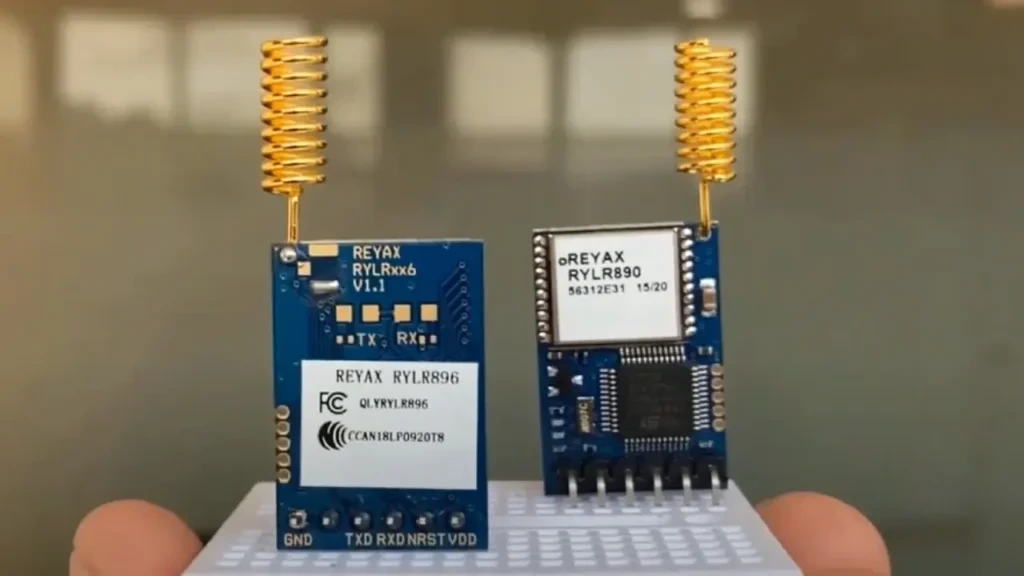 스프레드 스펙트럼 변조(단일 좁은 주파수 대역을 사용하는 대신 광범위한 주파수 범위에서 신호를 전송)를 사용하여 최대 10~15km 거리의 범위를 달성합니다. 이 모듈은 최소한의 전력을 소모하면서 장거리에서 안정적인 통신이 필요한 사물 인터넷(IoT) 장치에 적합합니다.