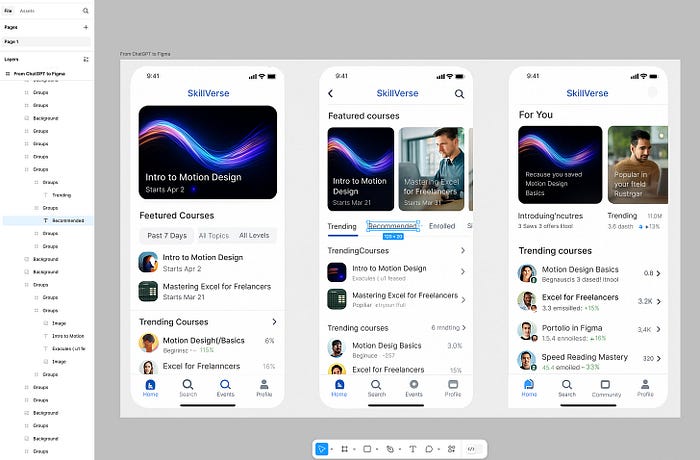다음으로, 재미있는 테스트로 Codia AI의 플러그인을 사용하여 ChatGPT에서 생성된 시각적 목업을 기반으로 Figma 디자인을 생성했습니다.